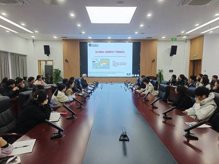 Bill教授以"Sustainable Power Technology -Future Options”为题,针对全球能源发展趋势,分析了世界主要能源和化石燃料大量消耗原因,在煤炭清洁和二氧化碳减排等方面提出独到见解。他分析了中国、美国、欧洲的能源利用情况以及各国处理二氧化碳的方法,重点介绍了英国减排二氧化碳的途径。作为Elsevier期刊《FUEL》主编,Bill教授介绍了该期刊化石能源及可再生能源和清洁能源等主题的论文刊录范围,分享了期刊最近五年的论文收录情况。Bill教授与现场师生就中试研究、二氧化碳捕获和光伏发电等领域进行了深入讨论,激励年轻学者在科研道路上不断进步