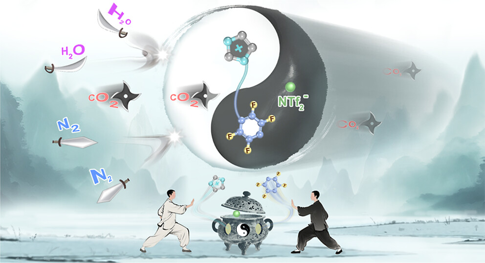 近日,课题组与加拿大阿尔伯塔大学曾宏波院士团队在《美国化学会志》(Journal of the American Chemical Society)合作发表重要研究成果,通过在固体吸附剂表面构建“离子疏水门控”(IHG),成功实现潮湿烟气中直接获取高纯度CO2,为工业碳减排提供了可行方案。博士研究生孙德贇、陈尚清老师为论文共同第一作者,史利娟教授、加拿大阿尔伯塔大学曾宏波院士、易群教授为论文共同通讯作者。图1. 离子疏水门控设计示意图该研究通过
