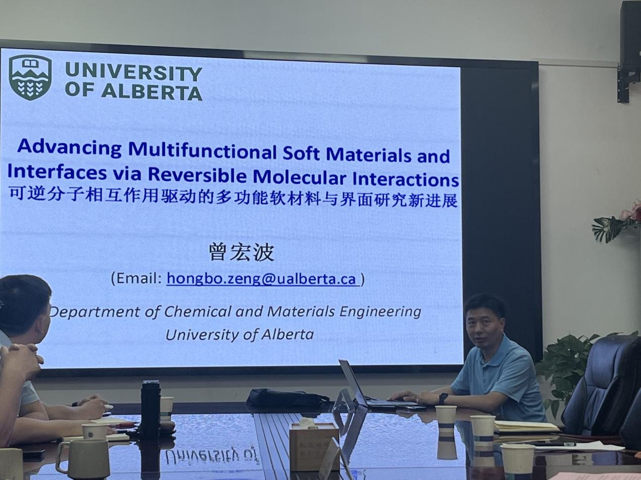 应课题组邀请,加拿大阿尔伯塔大学曾宏波院士于7月3日上午莅临yl34511线路中心yl34511线路中心进行学术讲学----《Advancing Multifunctional Soft Materials and Interface via Reversible Molecular Interactions》(可逆分子相互作用驱动的多功能软材料与界面研究新进展)。