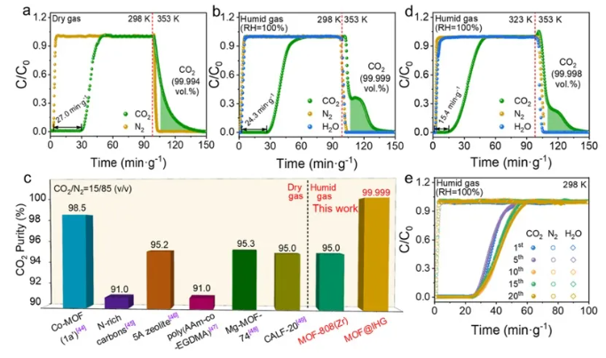 图2. MOF@IHG潮湿烟气分离CO2性能图